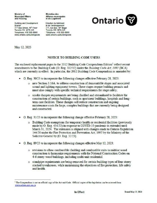 Amendment package #11 (May 12, 2023 update) to The 2012 Building Code Compendium